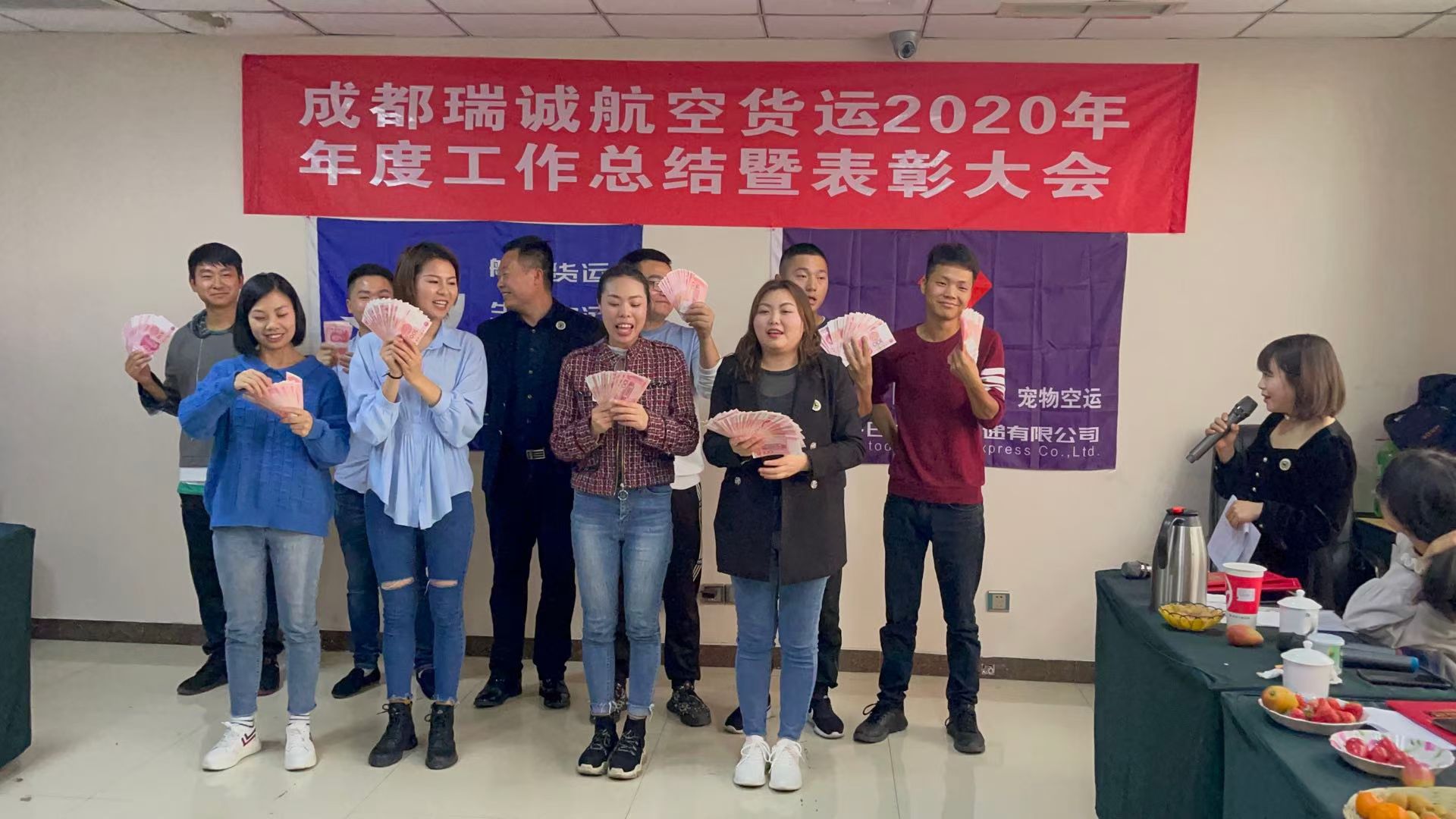 成都瑞诚航空货运议中对2020年优秀员工先进个人,优秀管理干部及团队、网络服务供应商机场战略合作航空公司及优秀客户单位给予表彰。最开心的环节作为员工来说就是发奖金的环节了。我司除了年终奖之外还设置了,优秀员工的表彰通报、先进个人、优秀干部、优秀驾驶员、以及最最最重要的合伙人分红发放(真的是很厚的一摞哦),让每个人拿奖励拿到手软。